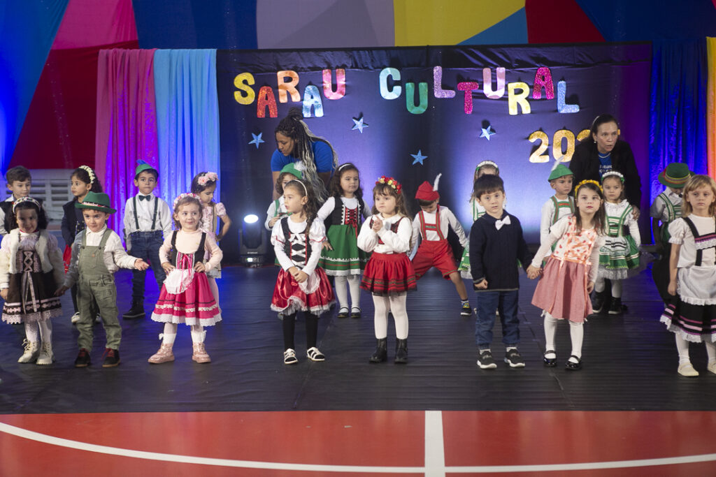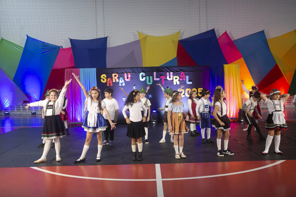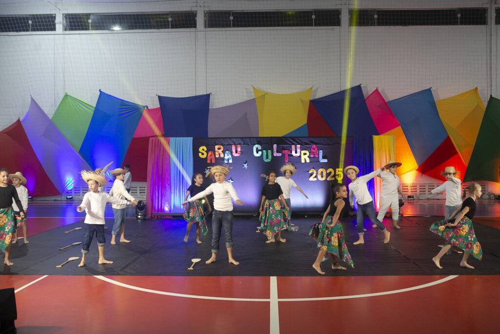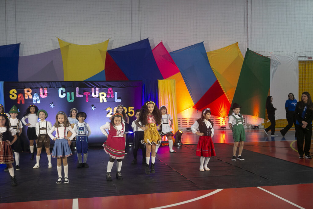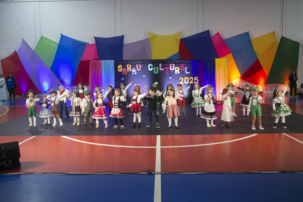 Nosso Sarau Cultural foi um verdadeiro espetáculo de sensibilidade e expressão. Com apresentações inspiradas na cultura de Santa Catarina, nossos alunos encantaram o público com músicas, danças, poesias e performances cheias de significado.